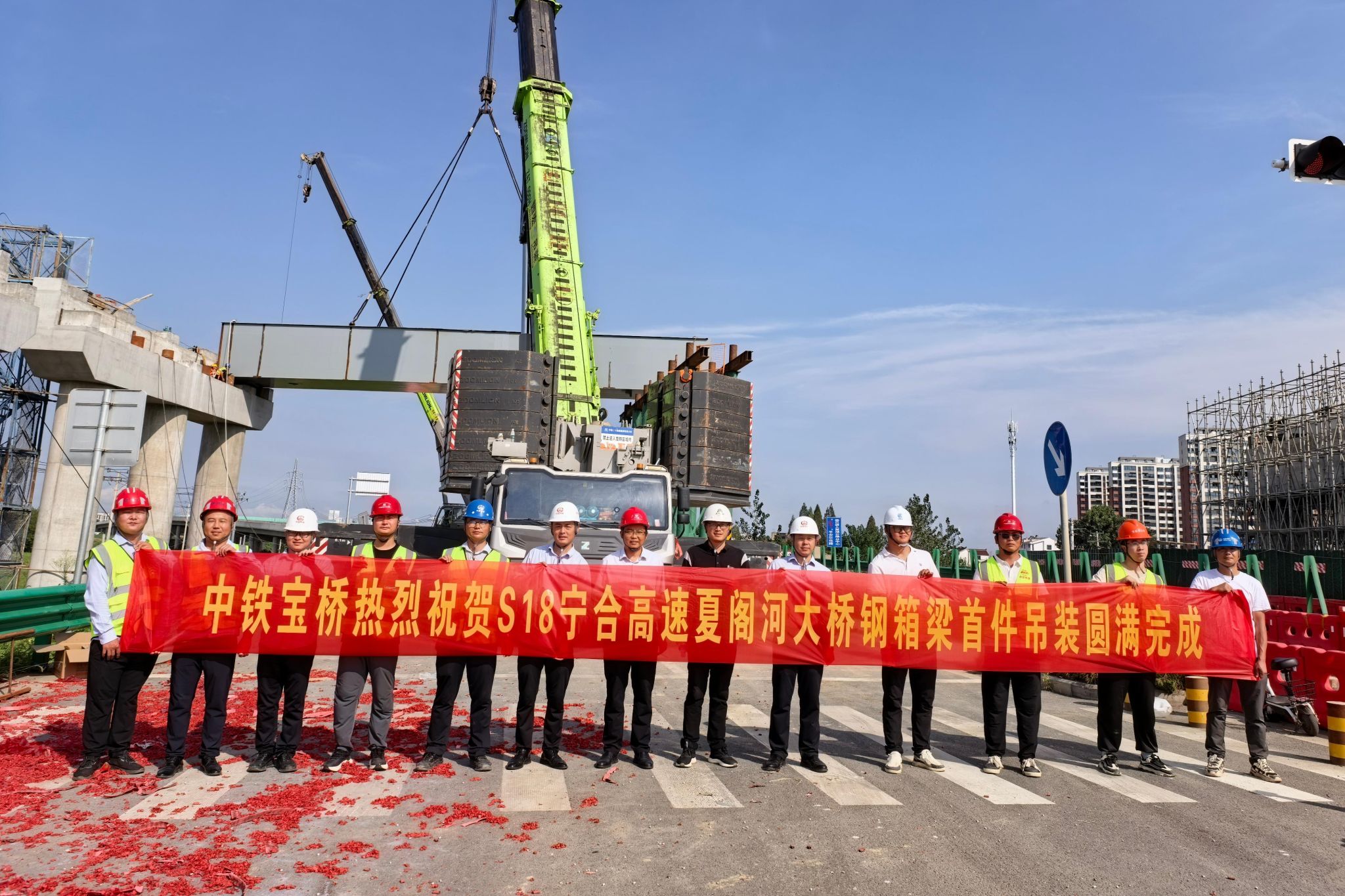 9月17日,由中铁宝桥承建的S18宁合高速夏阁河大桥钢箱梁制安项目首个杆件顺利吊装完成。