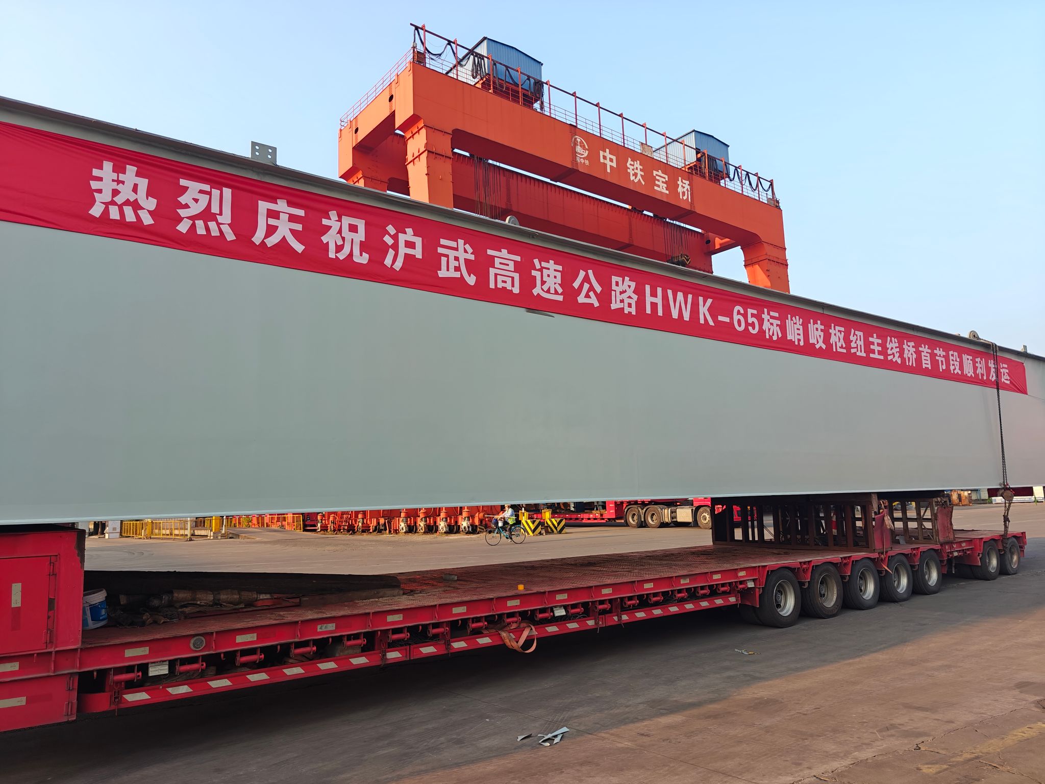 9月5日,中铁宝桥扬州公司承建的沪武高速公路太仓至常州段扩建工程HWK-65施工标段(简称“沪武项目”)钢箱梁首个块体在江苏扬州顺利发运,标志着项目建设正式迈入桥位架设阶段,开启了项目大干崭新篇章。