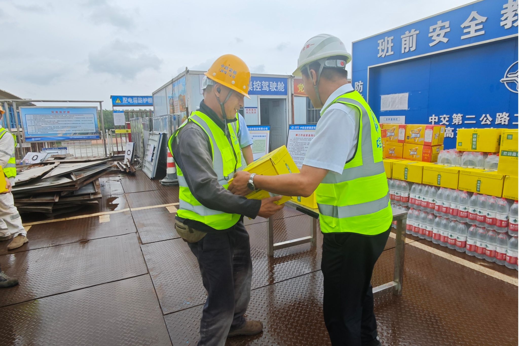 刘军深入项目施工现场,详细了解工程进度、施工难点及防暑降温措施落实情况,为奋战在高温一线的建设者送去防暑降温物资。