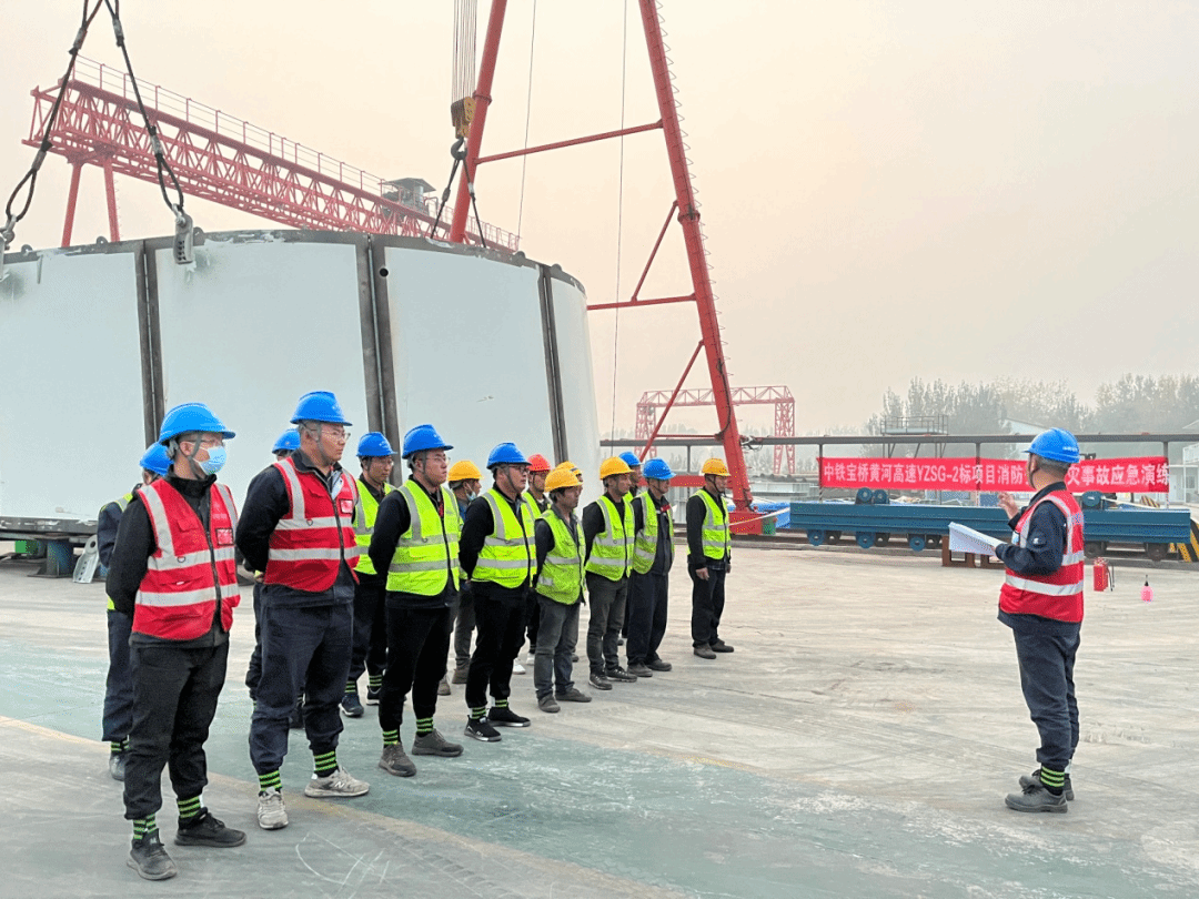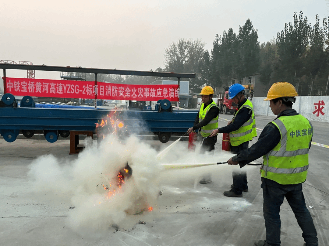 随着第31个全国消防日的到来,为大力宣传普及消防安全救援知识,提升广大员工的消防安全意识和火灾防范应急处置能力,确保施工现场消防安全,11月9日下午,中铁宝桥黄河高速YZSG-2标钢结构工程项目部组织开展了“抓消防安全,保高质量发展”为主题的消防应急演练。