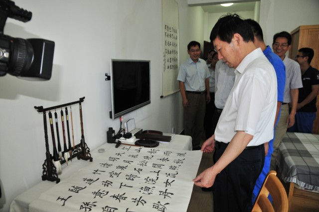 记者在中铁宝桥(南京)有限公司看到,这个公司除了有一所占地220 平方米、藏书11000 余册的阅览室外,还把每个职工的宿舍也建成了一个个小型的“职工书屋”。不少职工宿舍里都挂上了自己创作的书法作品,书架上还摆放了各类书籍。记者走进了其中一间“书香宿舍”,宿舍的主人、一位年轻的女职工在书架上摆放了近200 本书。她告诉记者,阅读已经成为职工生活中不可缺少的组成部分。