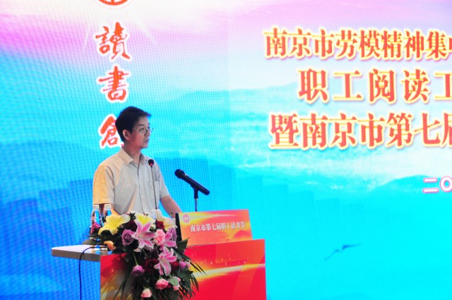 南京市领导、市总工会主席、党组书记臧正金出席会议并讲话。他在讲话中要求全市各级工会组织,要以职工书屋建设为依托,深入开展职工阅读活动,打造书香企业;要不断适应广大职工成长、成才的需求,为广大职工群众学习知识、获取信息、提高素质提供方便条件;要大力扶持、精心培育、普遍建立职工阅读组织,凝聚起一批充满活力、奋发进取的职工阅读骨干,通过典型的示范带动、引导广大职工立足岗位读书学习、成长成才;要进一步统一思想认识,以务实高效的作风,不断加强职工文化活动阵地建设;要把职工文化活动阵地建设成提升职工素质的“大课堂”,为职工成长进步提供机会、搭建舞台,让广大职工切实感到工会是“职工之家”;要发挥组织优势,切实履行职能,维护职工精神文化权益。要以社会主义核心价值体系为指导,大力弘扬劳模精神,弘扬社会主义核心价值观,精心打造职工文化品牌,切实维护职工精神文化权益。