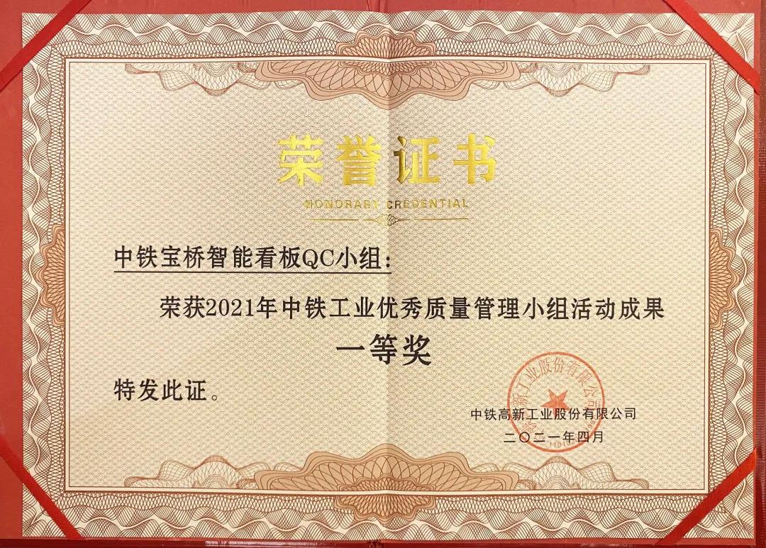 4月2日,中铁工业2021年质量管理成果发表暨质量工作交流会在江西九江召开,经过评比,南京公司智能看板QC小组荣获“2021年中铁工业优秀质量管理小组活动成果一等奖”。