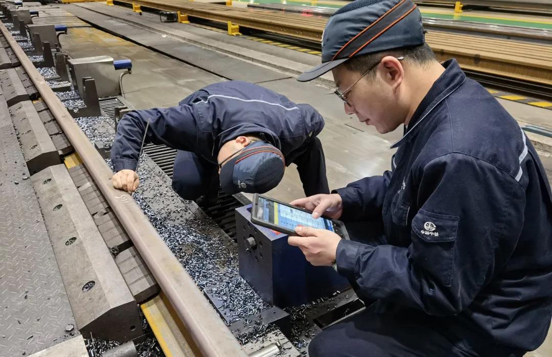 南京公司56米数控铣床西龙门停机维修期间,为保证生产连续性,班组开启4班3运转,7天24小时不停机模式,最大限度的保持高效率加工,仅一季度就加工完成轨件3000余根。