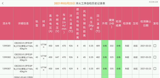 顶弯、淬火、正火、钻孔工序引入自检数字化应用,基本完成全车间数字化自检记录采集,提高了生产过程中的质量控制和管理水平,为后期大数据分析、提升产品质量提供数据支持。