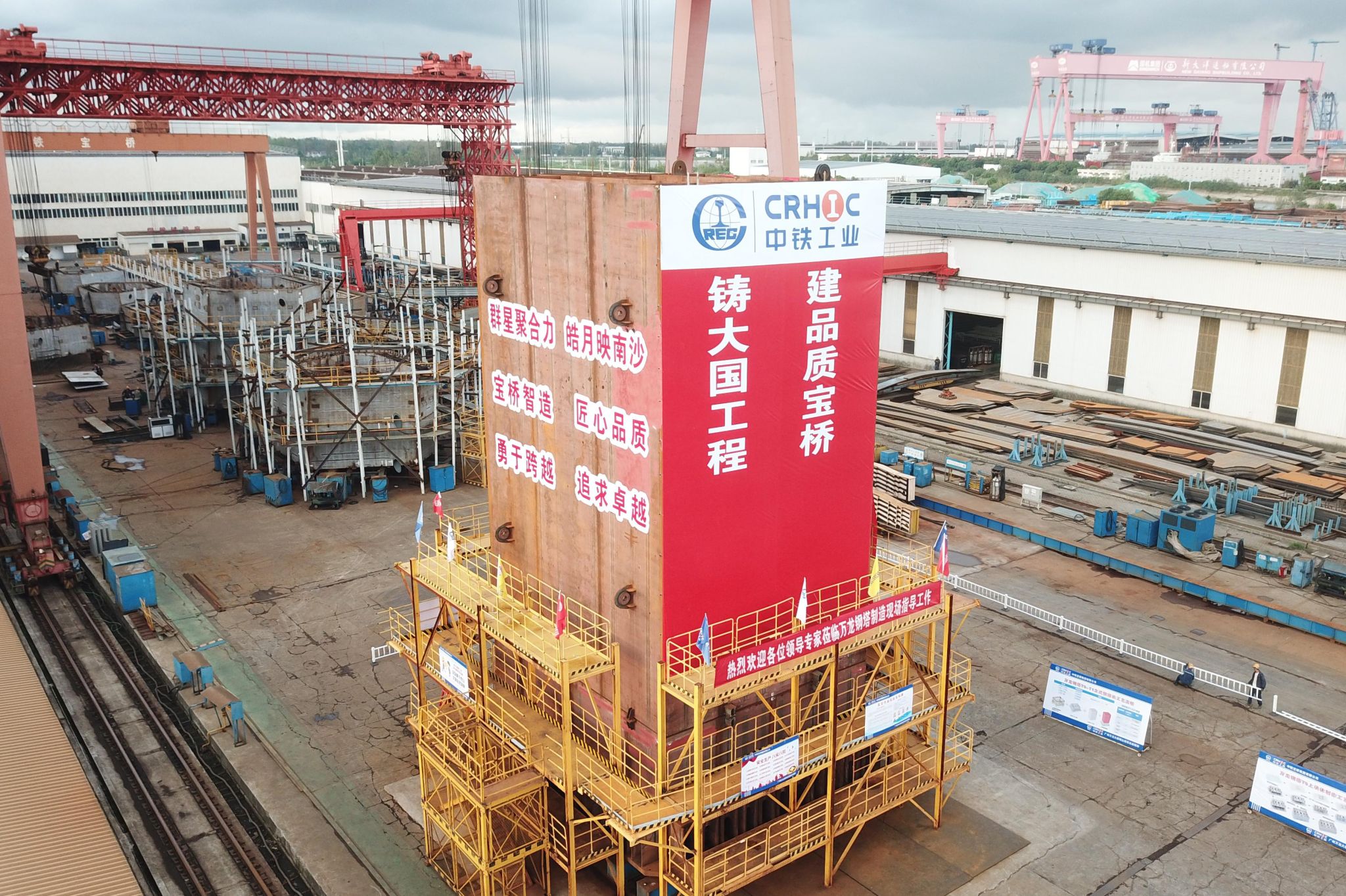 万龙大桥位于广州市南沙区,总长约5.15公里,主桥采用50+220+608+220+50m的空间缆椭圆塔自锚式悬索桥,是目前世界上最大跨度的自锚式悬索桥。主塔为内圆外椭圆形钢塔,中铁宝桥承建的工程量约2.5万吨,主塔外壁板及加劲肋等关键受力部位采用Q500qD钢材,其余Q420qD钢材。