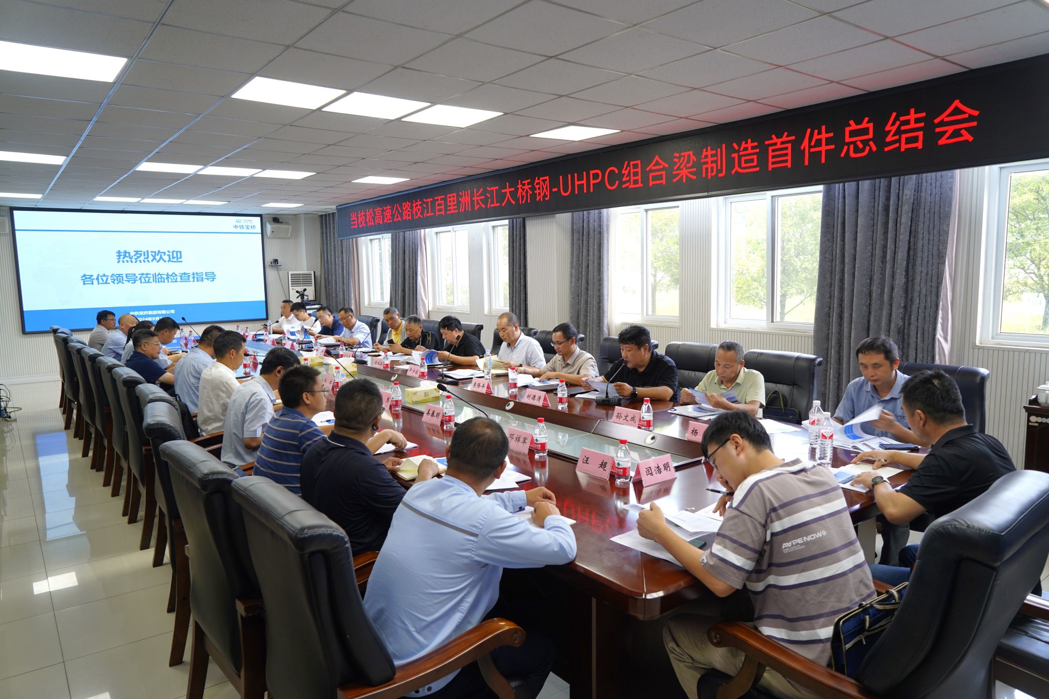 9月20日,当枝松高速公路枝江百里洲长江大桥(以下简称“百里洲长江大桥”)钢-UHPC组合梁制造首件总结会在江苏扬州召开。中铁宝桥集团副总经理韩小义,扬州公司党委副书记、总经理马增岗,副总经理刘红涛,总工程师孙蕾蕾参加会议。
