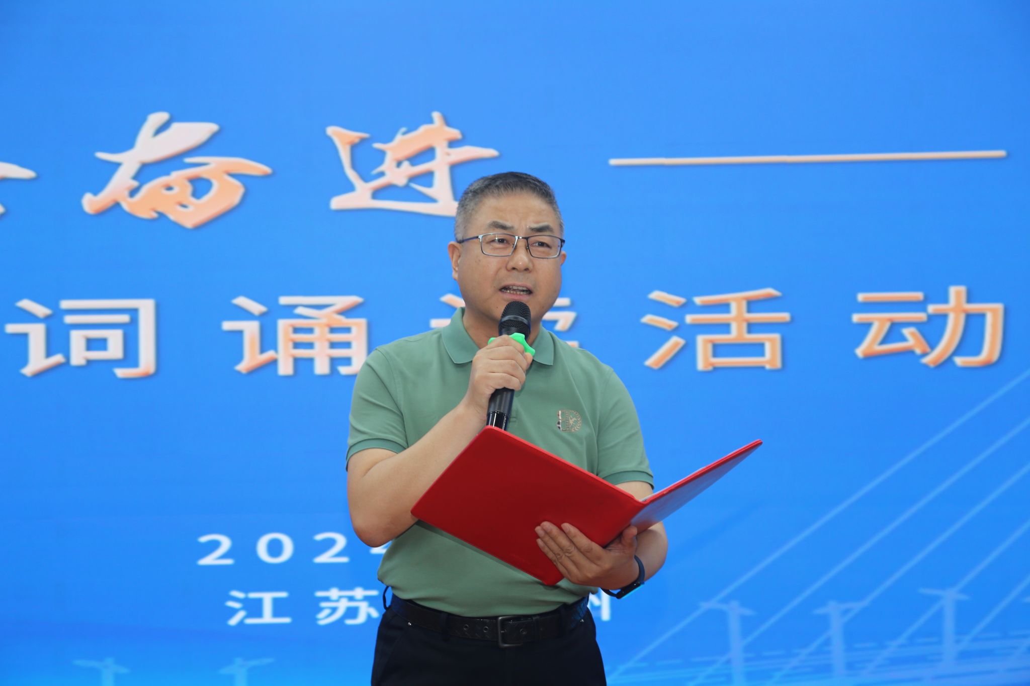 江苏省交通运输厅政研室副主任、二级调研员赵玮,江苏交通文联秘书长、作家分会会长陆新民,江苏交通文联书画分会会长汤志平、艺术分会会长唐韧以及江苏交通文联、扬州市诗歌学会各位艺术家们;中铁宝桥集团副总经理吕建锋,扬州公司党委副书记、总经理马增岗,总会计师宋文彬参加活动。