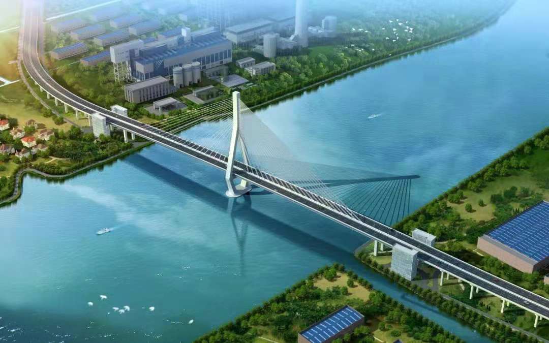 大桥主塔高136米,距岸侧约200米,最大跨径2*220米的昆阳路越江大桥将以独塔斜拉桥的姿态跨越黄浦江,并同步考虑了行人与非机动车过桥,为减小人非上桥的高度,桥面将采用错层布置,上层供机动车辆通行,下层则可供人非通行。因此主梁采用整体式箱型断面,组合梁形式,这种结构形式在黄浦江越江桥梁中尚属首例。项目建设对完善区域公路网,弥补闵行及奉贤西部地区干线公路的空白,促进区域经济发展具有重要的作用,是上海又一条跨越黄浦江的大动脉。