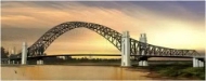 江汉七桥路线全长约为2754m。主桥为中承式钢桁系杆拱桥,主桥跨径布置为132+408+132m=672m,主跨上拱圈矢高90m,主桁上、下弦拱轴线采用二次抛物线。作为国家重点研发计划-高性能桥梁钢项目的示范工程,首次使用Q690qE钢板,首次采用全新构造,要求正交异性钢桥面板与U肋全熔透焊接,节点板首次通过面弯实现桥面的拓宽,是一座空间结构复杂、施工难度大的国际知名桥梁,建成后将成为一条跨越武汉汉江的大动脉。