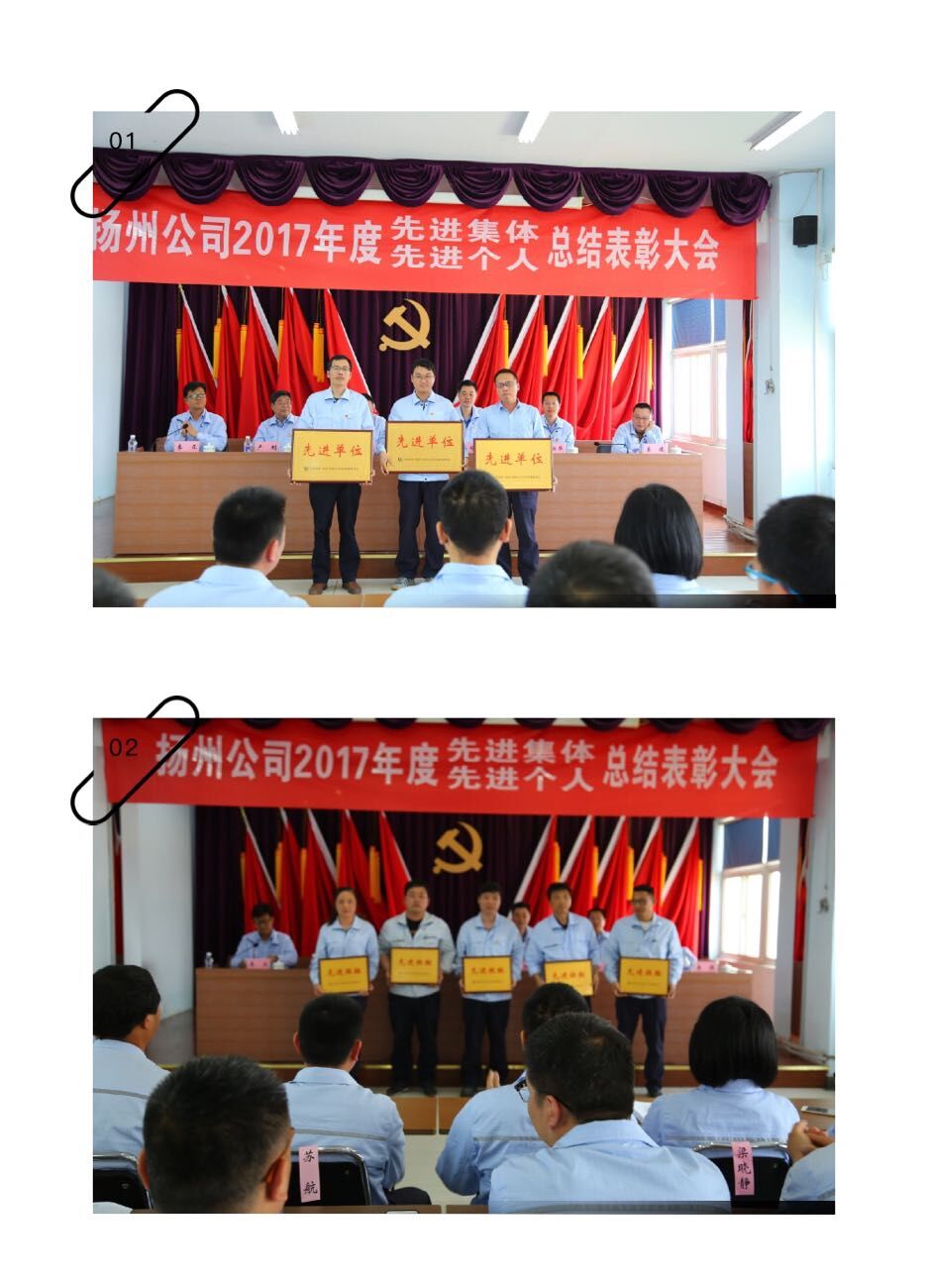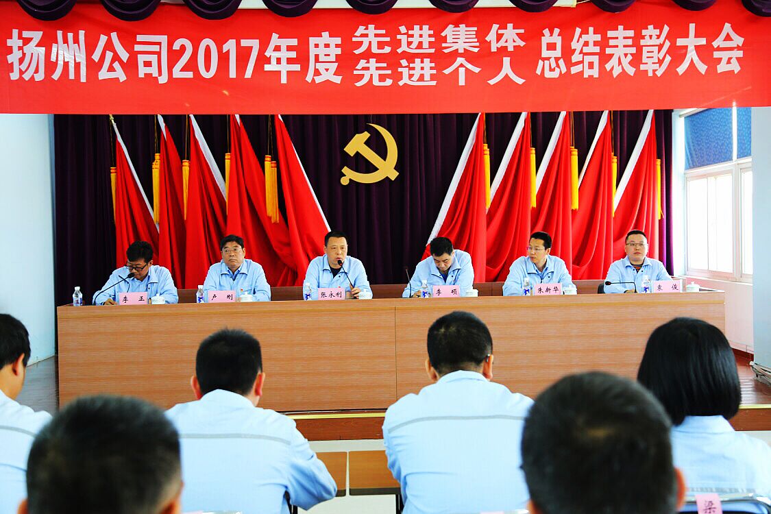 5月4日,扬州公司在五楼会议室召开2017年度先进集体、先进个人总结表彰大会。公司领导李硕、张永利、卢刚、朱新华、袁俊出席会议,扬州公司党委副书记、纪委书记、工会主席李正主持大会,公司中层以上管理人员及受表彰的先进集体代表和先进个人共约80余人参加了会议。