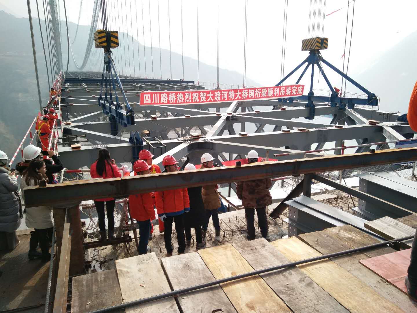 2018年2月6日上午11点,随着最后一片钢桁梁在康定岸安装到位,雅康高速公路泸定大渡河特大桥钢桁梁顺利合龙。雅康高速公路泸定大渡河特大桥从2017年9月26日进行首片钢桁梁大节段吊装,历时约5个月。