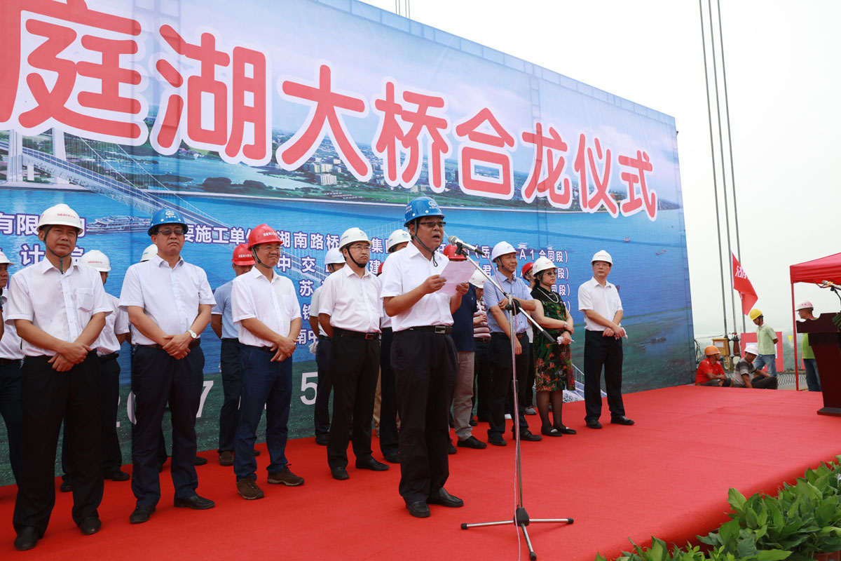 8月15日上午10时许,由中铁宝桥扬州公司承担钢梁制造任务的大岳高速洞庭湖大桥全桥顺利合龙。合龙仪式在湖南省岳阳市洞庭湖大桥桥面举行,集团公司党委书记、董事长洪军,扬州公司副总经理卢刚及大桥项目部职工参加了仪式。