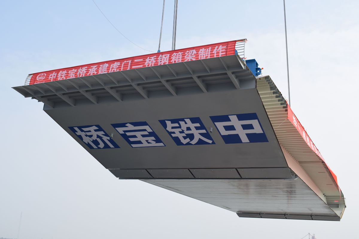 2017年11月9日,扬州公司承建的虎门二桥大沙水道钢箱梁正式开始吊装,标志着虎门二桥钢箱梁正式进入上部结构施工阶段。