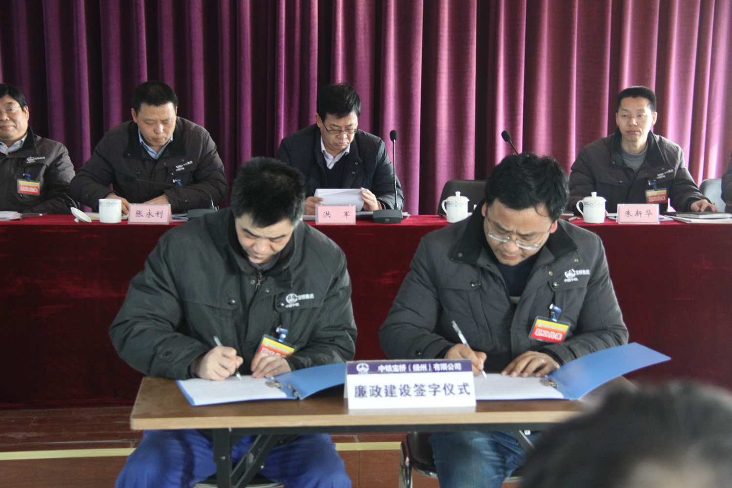 接着,扬州公司党委书记李硕分别与经营销售部部长齐金山、设备保障部部长梁永强签订《廉政建设责任状》。技术研发部部长刘志刚、设备保障部部长梁永强分别作为职工代表作表态发言,他们一致表示在2016年的工作中将更加坚定信心、团结一致、拼搏实干,为公司做大做强作出更大的贡献。