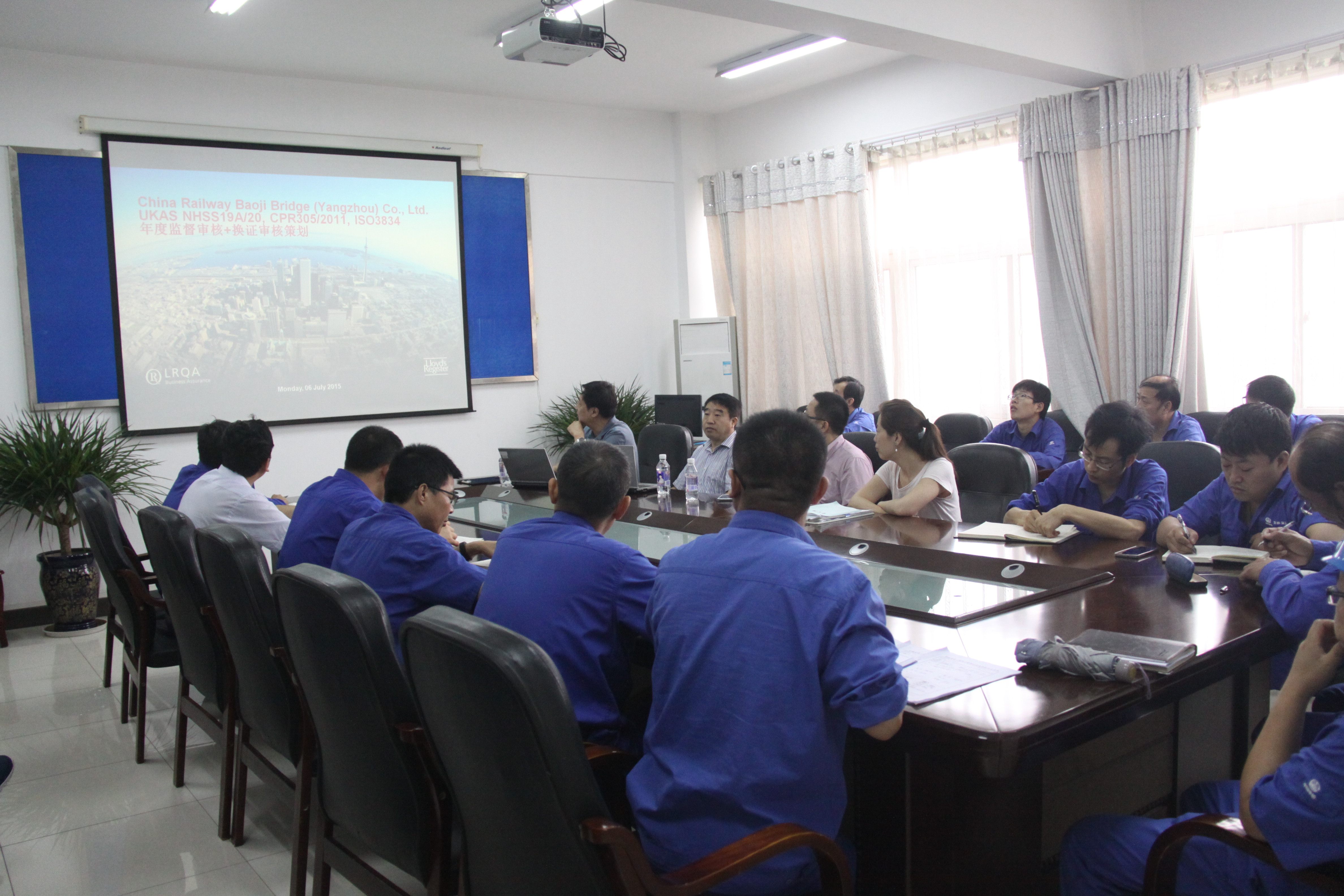 2015年7月6-8日,劳氏质量认证(上海)有限公司审核组一行三人对公司焊接质量管理体系和涂装、钢结构制作质量管理体系进行为期3天的年度监督审核。审核组对涉及认证范围的9个部门、生产加工车间、原材料库房等进行深入审核,审核中审核员通过查阅文件、记录,现场询问操作人员、现场测试及与负责人谈话等方式进行细致入微的审核。在末次会议上审核组宣布通过审核中获取的大量证据,表明公司质量管理运行充分、适宜、有效,劳氏颁发证书继续有效。会上审核组对公司质量管理提给予高度评价,并表示在整个认证周期内通过每次监督审核中不符合项数量呈递减趋势,表明公司体系日趋完善,进步明显。