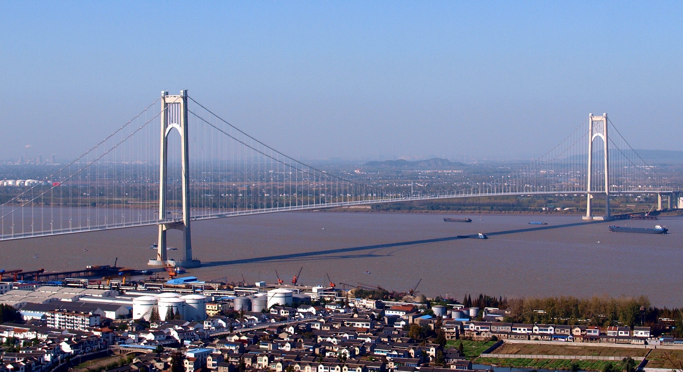 南京长江第四大桥是国务院批准的南京市城市规划中“五桥一隧”过江通道之一,也是沪蓉国道主干线——南京绕城高速公路的过江通道和重要组成部分。大桥位于南京长江二桥下游10公里处,起于六合区横梁镇,经龙袍镇跨越长江,止于沪宁高速麒麟枢纽,主桥1418米,其中钢箱梁全长2189.6米。与南京二桥、三桥不同,南京四桥是南京市第一座悬索桥,也是国内目前跨径最大的两塔三跨悬索桥,主跨为1418米,在同类桥型中居世界第三。主桥加劲梁采用扁平流线型封闭薄壁钢箱梁,钢箱梁高度3.5米,梁宽38.8米(含封嘴),标准节段长15.6米,主桥钢箱梁材质为Q345D,全桥用钢量约3.4万吨。中铁宝桥承建该桥全部钢箱梁3.4万吨生产任务。自2010年3月起建设,至2012年12月24日正式通车。大桥对于进一步提升国家运输主通道的通行能力,完善全省主干线公路网布局,促进区域协调发展具有非常重要的意义。