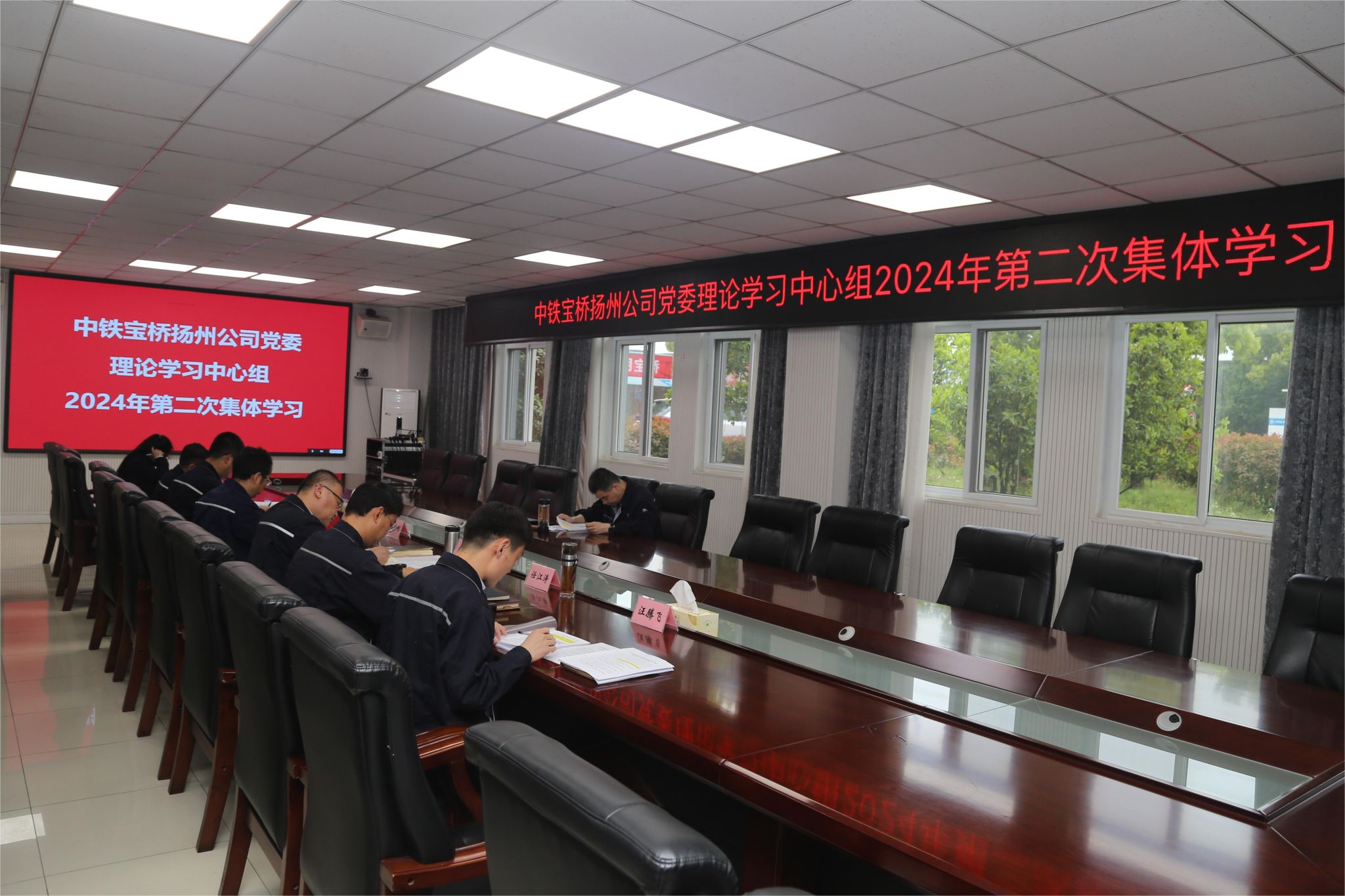 4月28日,中铁宝桥扬州公司党委理论学习中心组召开2024年第二次集体学习会。扬州公司党委书记、执行董事李硕主持会议,公司领导班子成员,党群系统各部门负责人参加学习。
