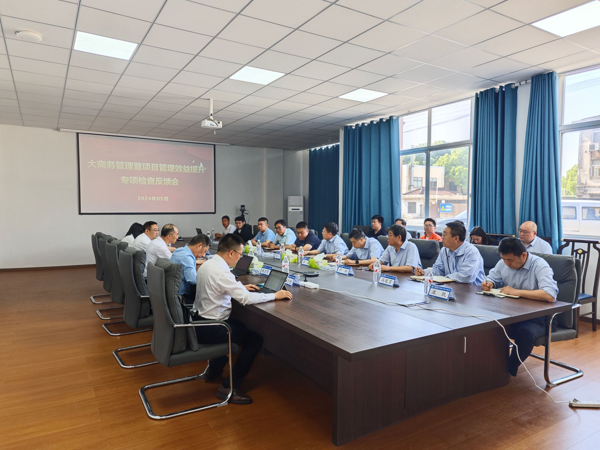 5月15日-16日,中铁工业副总经理、总经济师谢喜安,商务管理部副部长(主持工作)田征一行到张靖皋长江大桥项目部开展2024年第一轮大商务管理暨项目效益提升专项督导检查。集团公司副总经理韩小义、商务管理部副部长卢刚,扬州公司党委书记、执行董事李硕陪同检查。