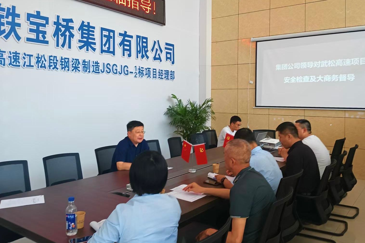 5月28日,中铁宝桥集团公司副总经理韩小义到武松高速项目部调研指导工作,扬州公司副总经理、总经济师任江涛陪同调研。