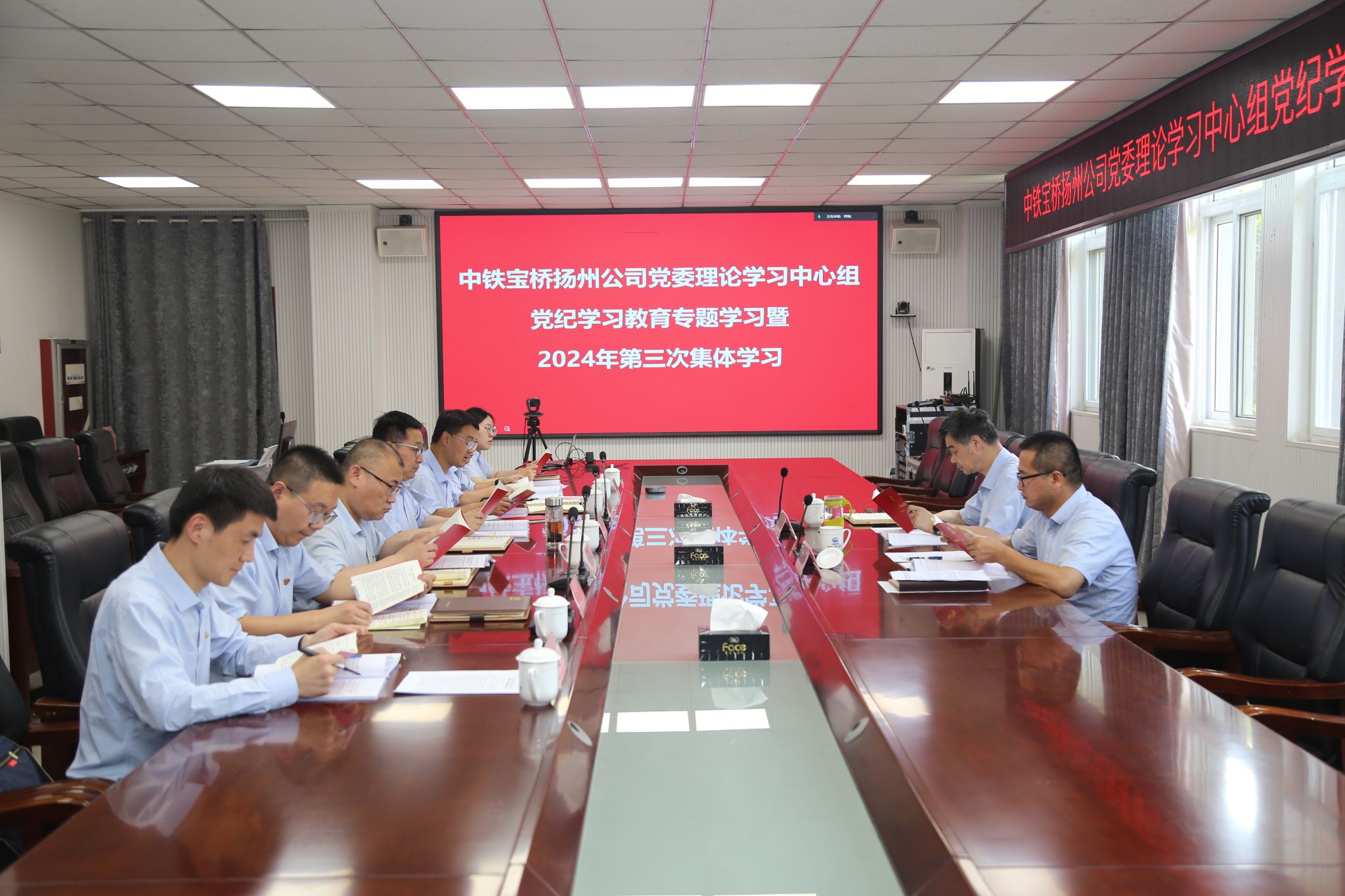 6月1日,中铁宝桥扬州公司党委理论学习中心组召开党纪学习教育专题学习暨2024年第三次集体学习会。扬州公司党委书记、执行董事李硕主持会议,公司领导班子成员,党群部门负责人参加学习。