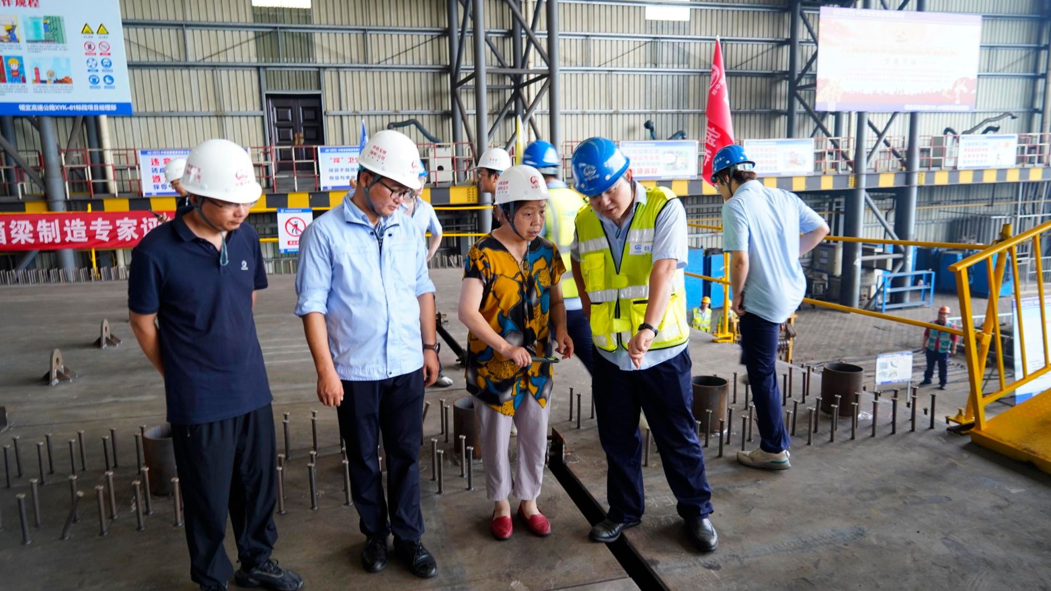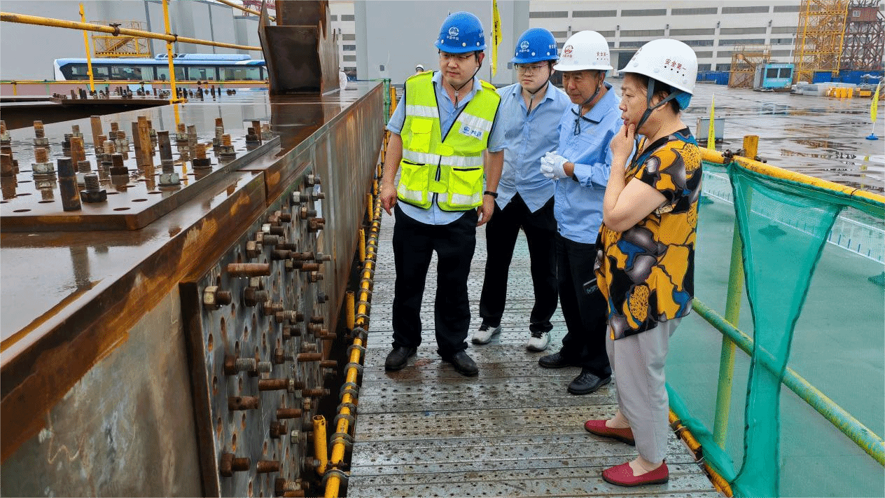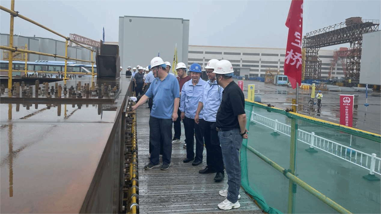 会前,与会专家和代表参观了钢桁梁主桁试装和首轮钢箱梁预拼装场地。