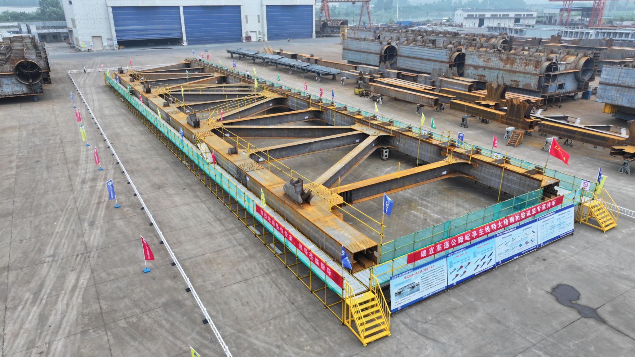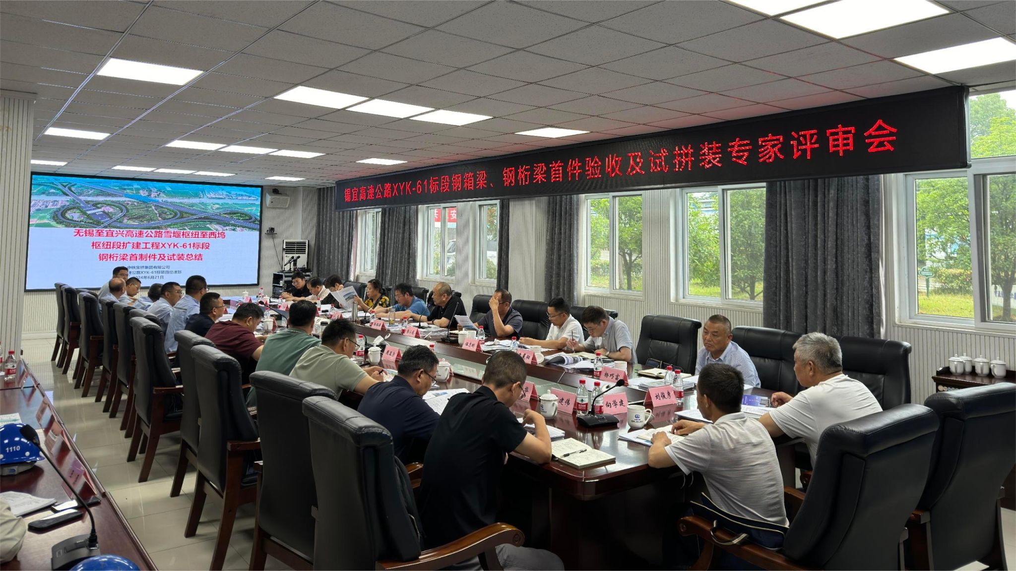6月21日,无锡至宜兴高速公路雪堰枢纽至西坞枢纽段扩建工程钢结构制造项目XYK-61标段(简称“锡宜高速”)钢箱梁、钢桁梁首制件验收及试拼装专家评审会在江苏扬州召开。公司党委副书记、副总经理马增岗(主持行政工作)参加会议。