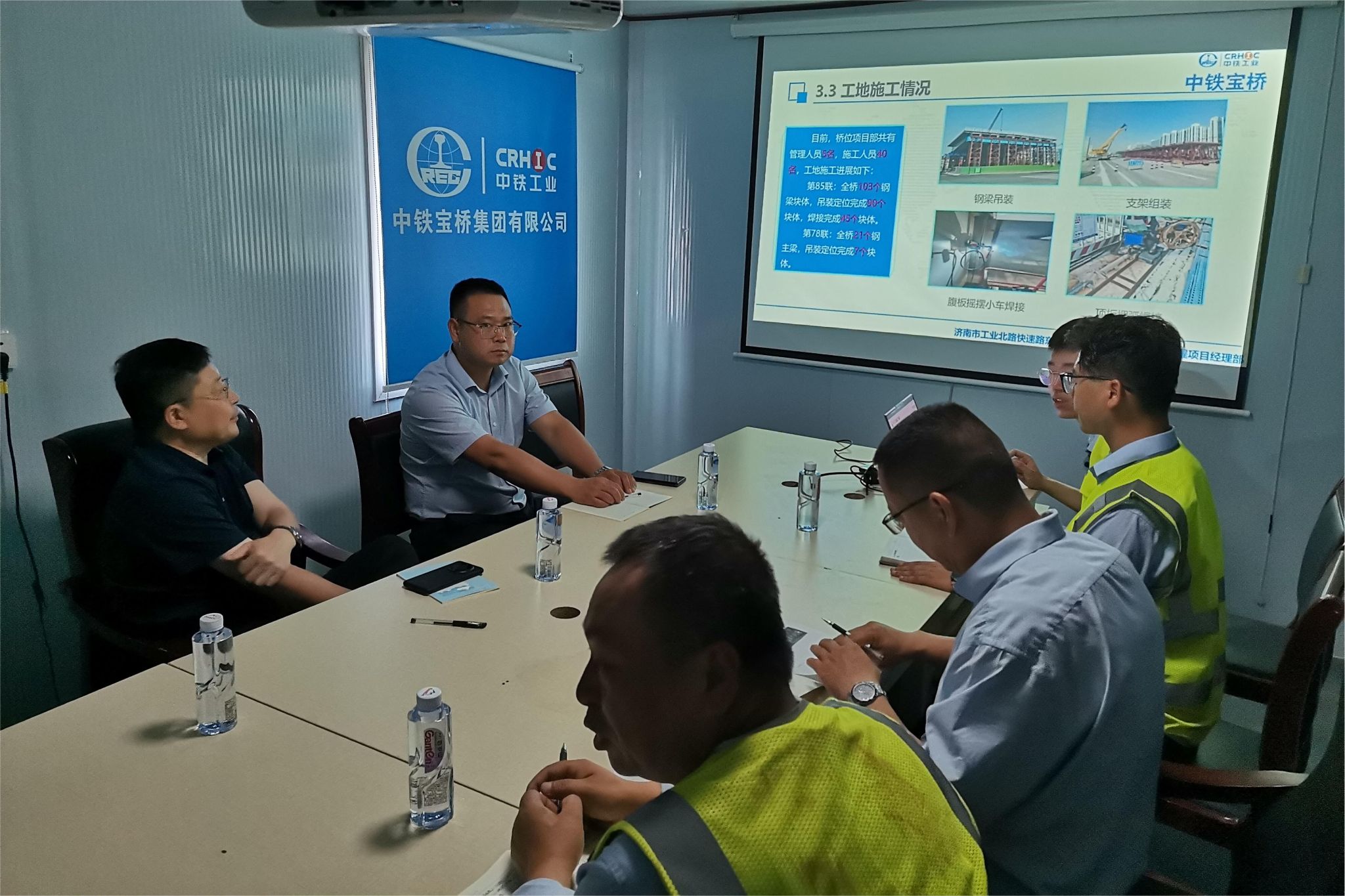 7月18日,中铁宝桥集团公司副总经理韩小义到济南工业北路项目部调研指导工作,扬州公司华北区域指挥长王战红陪同调研。