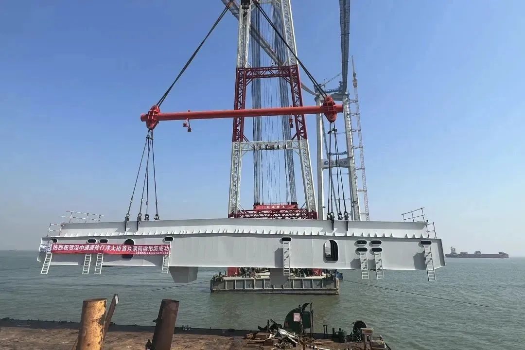 2022年12月27日,伶仃洋大桥首片钢梁成功吊装。