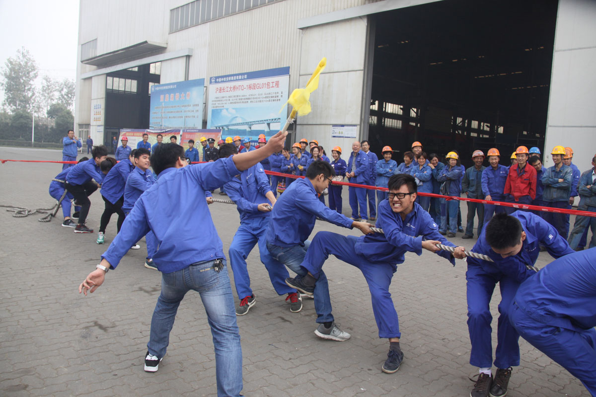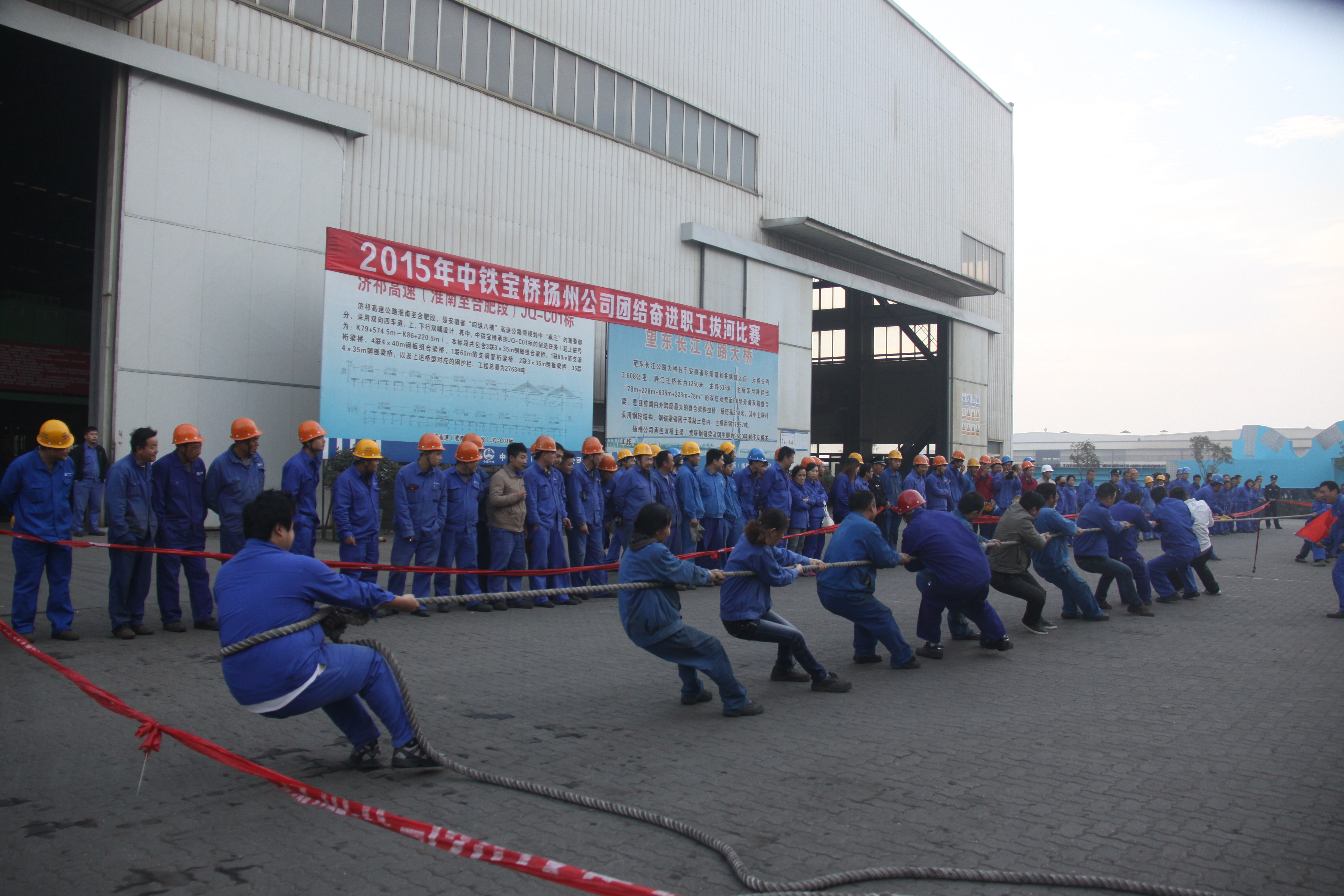 拔河活动简单、易学、易行,参与面广,参加人数多,是最能体现团结拼搏、健康向上精神风貌和团队精神的体育运动项目之一,非常适合作为全民活动形式普及和推广,是一项集健身性、娱乐性、竞技性、观赏性于一体的广大职工群众喜闻乐见的体育项目。拔河比赛在扬州公司举办四年来,连年火爆、人气高涨,今年又一次创下参赛队伍最多,比赛时间最长的新纪录。比赛为期20天,利用每天早班会时段进行,每一场拔河比赛,从双方队伍进场那一刻开始,无论是选手,还是拉拉队员,均是摩拳擦掌,兴奋而又紧张。准备阶段,各队迅速排兵布阵,从队员的前后顺序、握绳手势、脚步位置到拔河号子,均进行细致的部署。裁判员一声令下,洪亮整齐的拔河号子声瞬间爆发,双方拉拉队的加油声更是此起彼伏,热烈的气氛让在场的每一位同事都热血沸腾,为之鼓舞。