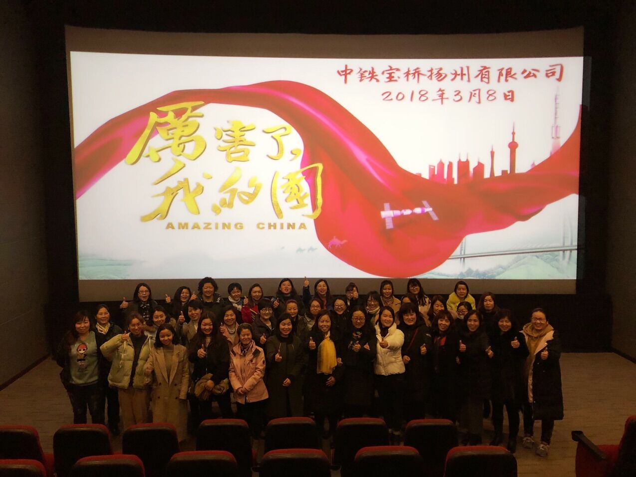 3月8日下午,扬州公司工会组织进行全体女职工观影活动,来自公司各单位的120多名女职工走下工作岗位,由公司工会组织到扬州市京华城喜满客世纪影城观看纪录片《厉害了,我的国》,通过影片切实的领略了我国的大国风采,在无比自豪和感动的情绪中度过了非常有意义的90分钟!