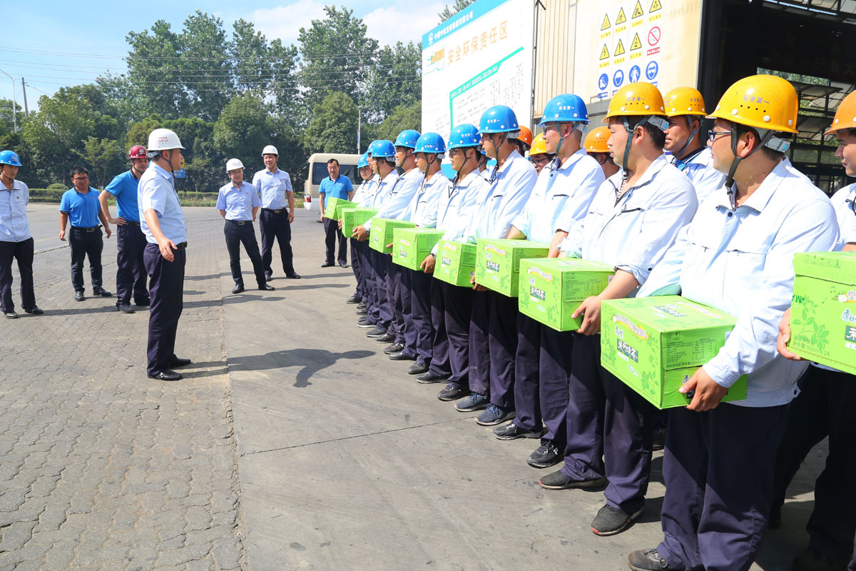 7月17日,集团公司党委副书记、纪委书记侯映晖在扬州公司出差工作期间,专程到生产一线慰问奋战在最前线的职工,为他们送去了矿泉水、清茶饮料等防暑降温品,带去了组织的关心与 “凉爽”。侯书记嘱咐大家,在当前的生产形势下,要合理安排工作时间,注重劳逸结合,保障身心健康。各级单位也要采取有力措施,全力抓好防暑降温工作,确保职工安全健康、生产稳步运行。扬州公司党委书记李硕,总经理黄鑫,党委副书记、纪委书记、工会主席白昆陪同并参加了慰问。
