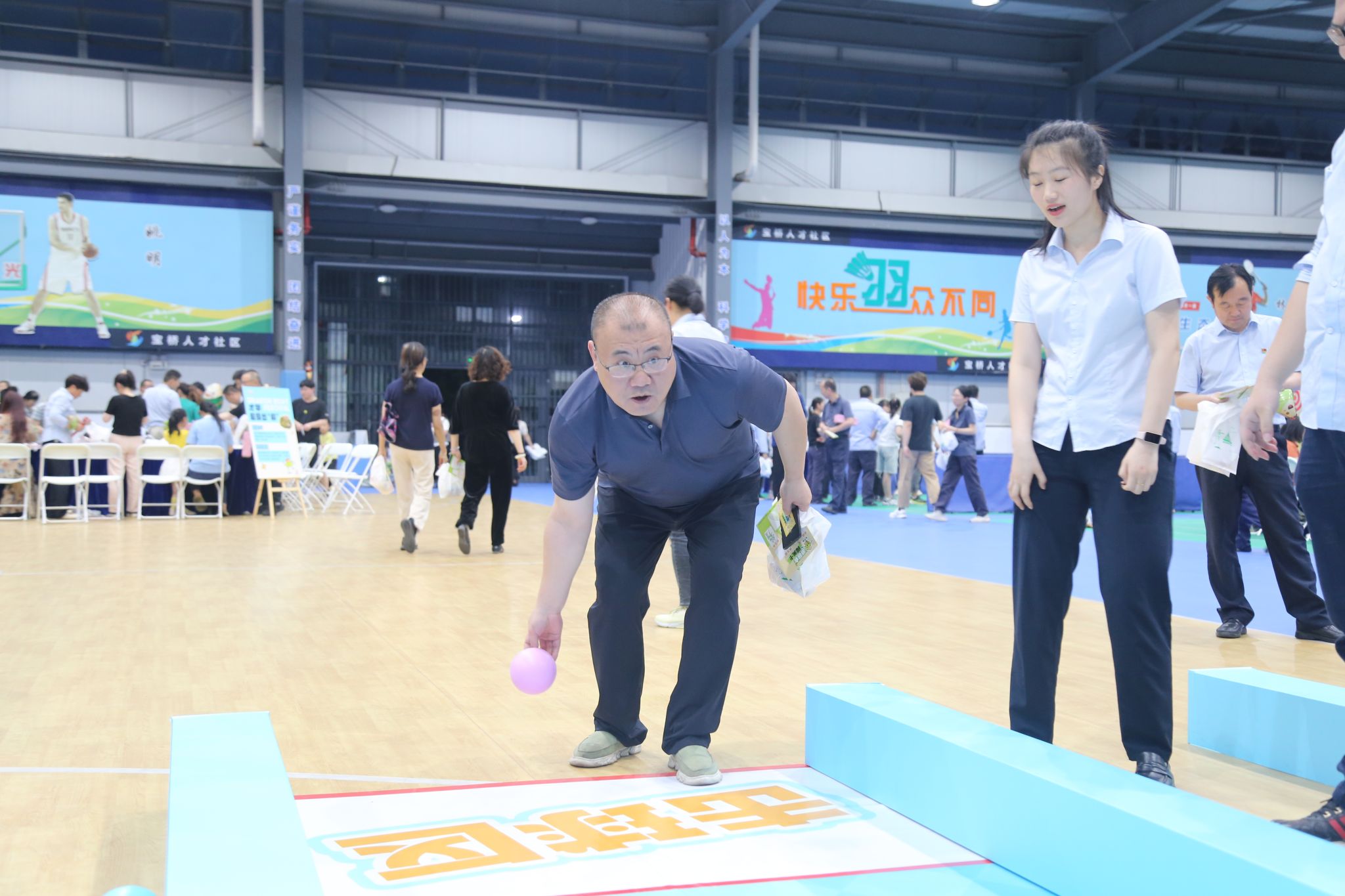 超级保龄球游戏区,比赛规则简单易懂,大家跃跃欲试,都想击倒尽可能多的瓶子,纷纷使出浑身解数,这是一场集技术、体能和运气于一体的实力对局,每当有选手打出全中时,现场都会响起阵阵掌声和欢呼声。