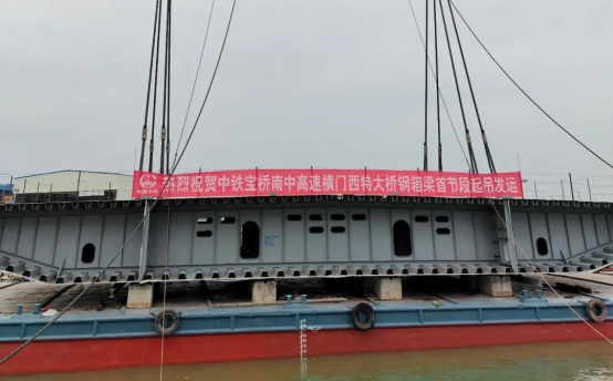 首个钢箱梁段的顺利起吊装船,标志着横门西特大桥钢箱梁运输及桥位施工作业即将正式拉开序幕。据悉,南中高速地处粤港澳大湾区核心区域,项目建成通车后将作为跨珠江通道体系重要组成部分及大湾区互联互通的重大交通基础设施。