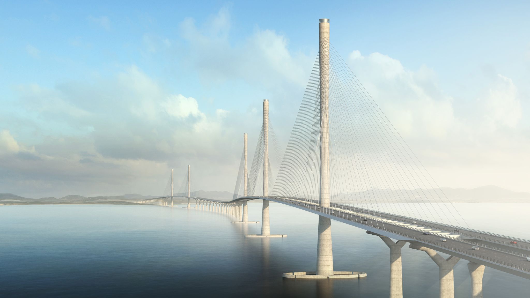 黄茅海跨海通道项目东连港珠澳大桥,西接西部沿海高速,是组成粤港澳大湾区重要跨江通道,路线全长29.93千米,设计时速100km/h。黄茅海跨海通道建成后将与港珠澳大桥、深中通道、南沙大桥、虎门大桥,共同组成大湾区跨海跨江通道群,加快形成世界级交通枢纽,构建“一核一带一区”区域发展新格局。