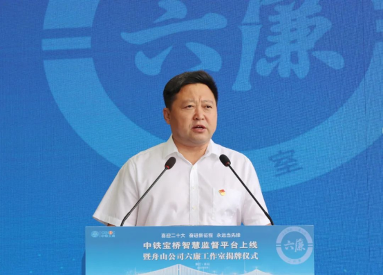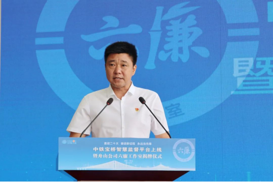 9月19日,中铁宝桥纪检智慧监督平台上线暨舟山公司“六廉”工作室揭牌仪式在浙江舟山举行。中铁工业党委委员、纪委书记陈立峰,中铁宝桥党委书记、董事长洪军,舟山市纪委常务副书记、市监委副主任杨妙君 ,高新区管委会党工委委员、纪工委书记林备瑜出席活动并为中铁宝桥舟山公司“六廉”工作室揭牌。活动由中铁宝桥党委副书记、纪委书记刘军主持。