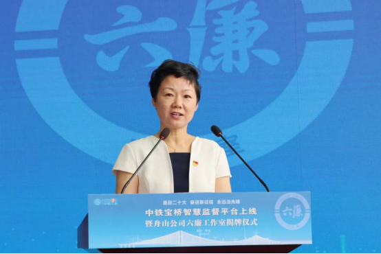 陈立峰代表中铁工业党委、纪委对舟山市委市政府和市纪委监委对中铁工业的关心和支持表示感谢,向中铁工业所属各单位及全体干部员工致以问候。他指出,举办中铁宝桥舟山公司纪委与舟山市纪委监委廉洁文化共建暨智慧监督平台上线和“六廉”工作室揭牌活动,共同见证“六廉”文化落户舟山,智慧监督平台上线运行这一重要时刻,这既是对习近平总书记在十九届中央纪委六次全会上重要讲话精神的深化落实,也是贯彻党中央《关于加强新时代廉洁文化建设的意见》的重要举措。他强调,舟山公司纪委要坚持继承和创新相结合,勇于跨越,追求卓越,不断挖掘“源头活水”,充实监企廉洁文化共建内涵,推动共建工作不断走深走实。要借鉴好中国中铁“开路先锋”文化和中铁工业“六廉”文化建设的成功经验,积极配合舟山市纪委监委打造“亲清”政商关系,筑牢“海上清舟”堤坝,为舟山市经济高质量发展作出积极贡献。