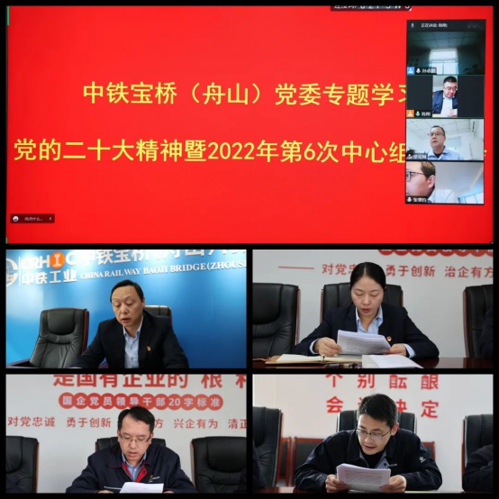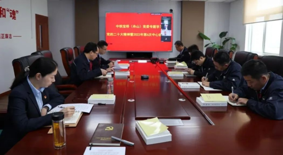 11月2日,公司党委理论学习中心组围绕党的二十大精神进行集体学习,集中学习了党的二十大报告、习近平总书记在中共中央政治局第一次集体学习时的讲话、关于党的二十大报告主要精神的权威解读、中共中央关于认真学习宣传贯彻党的二十大精神的决定等有关文件精神,并开展交流研讨。公司党委书记、执行董事陈刚主持集体学习并讲话。公司全体中心组成员、驻舟集团公司中层干部参加学习,出差及驻外领导以视频连线的方式参会。